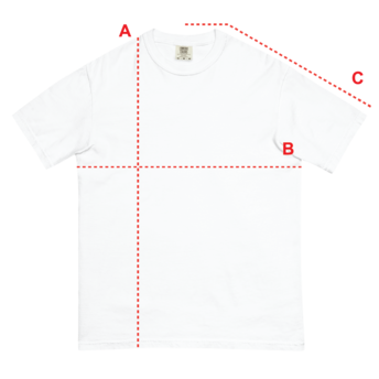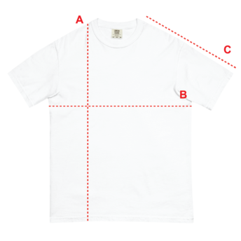 Place the end of the tape beside the collar at the top of the tee (Highest Point Shoulder). Pull the tape measure to the bottom of the shirt.