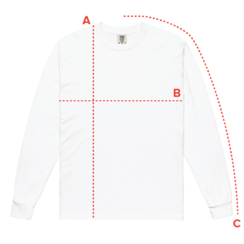 Place the end of the tape beside the collar at the top of the tee (Highest Point Shoulder). Pull the tape measure to the bottom of the shirt.